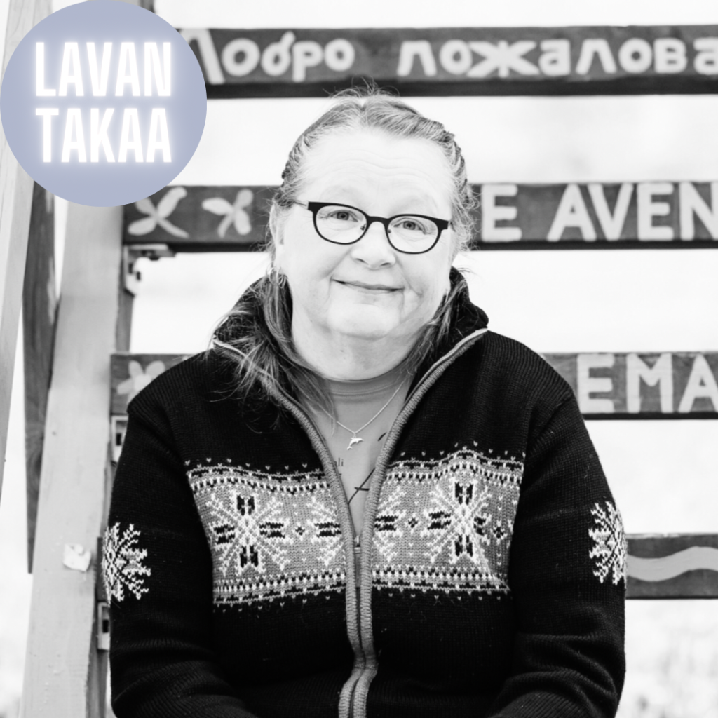 ![Teksti Lavan takaa Jenna Lahtinen. Kuvassa henkilö katsoo kameraan.]()